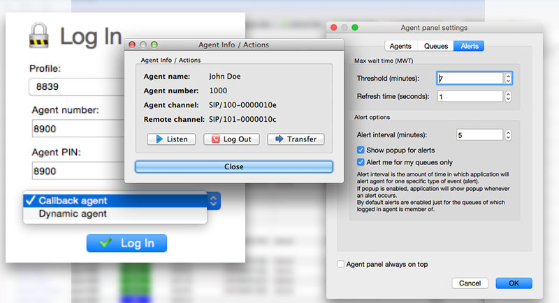 The dynamic login option allows an agent to login remotely into the queue and wait for the next call while listening to music on hold. Callback login is the traditional call center configuration where an agent will answer a ringing phone to be joined with the waiting caller.